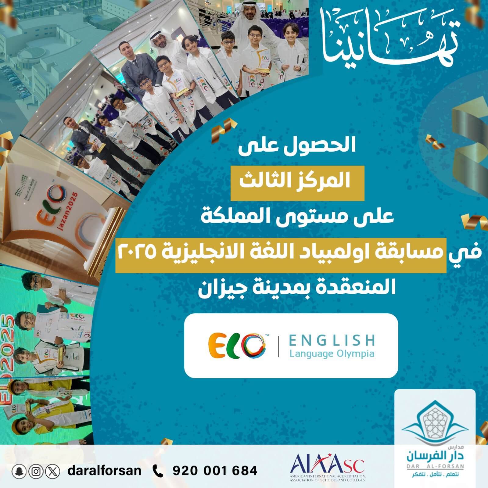 الحصوب على المركز الثالث على مستوى المملكة فى مسابقة اولمبياد اللغة الانجليزية 2025 المنعقدة بمدينة جيزان
